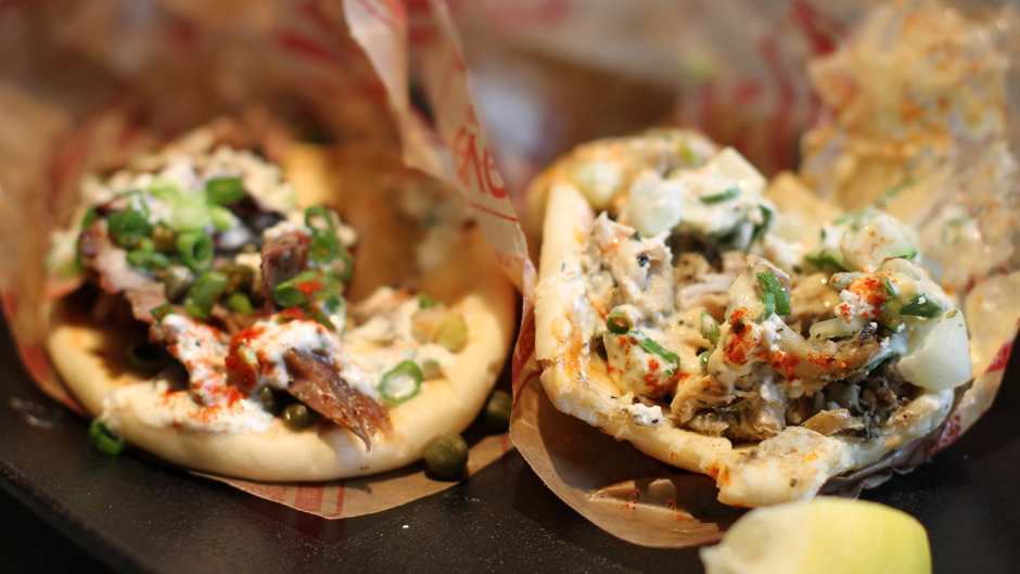 | Beef wrapped in pita with tzatziki, tomato, cucumber & onion | |